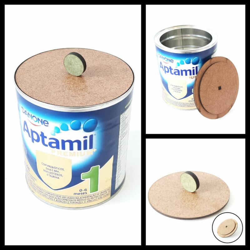 Tampa mdf para lata Danone leite em pó Aptamil ref 524